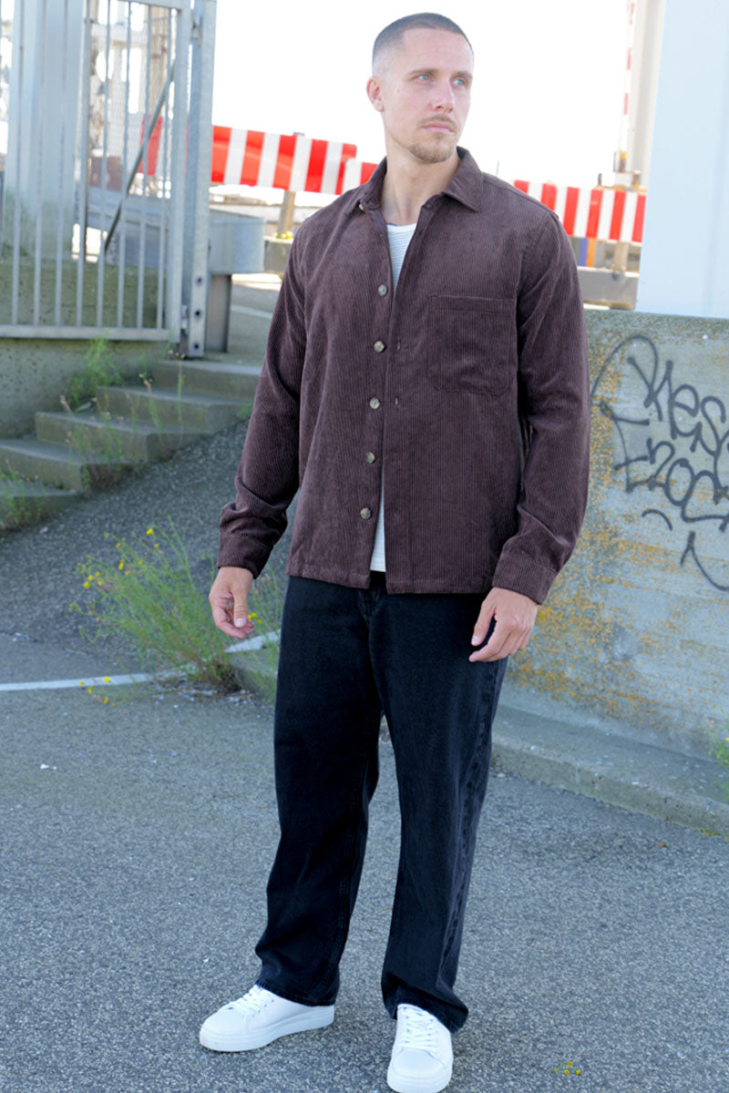 • Koszula overshirt z sztruksu z długimi rękawami i klasycznym kołnierzem
