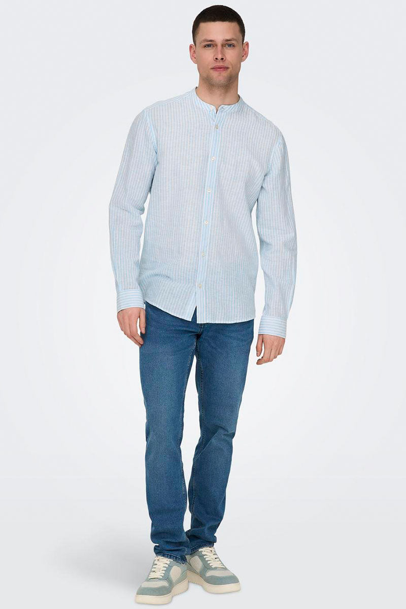 Caiden LS Mao Stripe Linen Shirt Cashmere Blue
