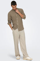 Caiden LS Linen Mao Shirt Fossil