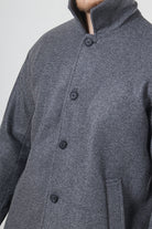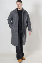 - Klasyczny długi płaszcz z zapięciem na guziki