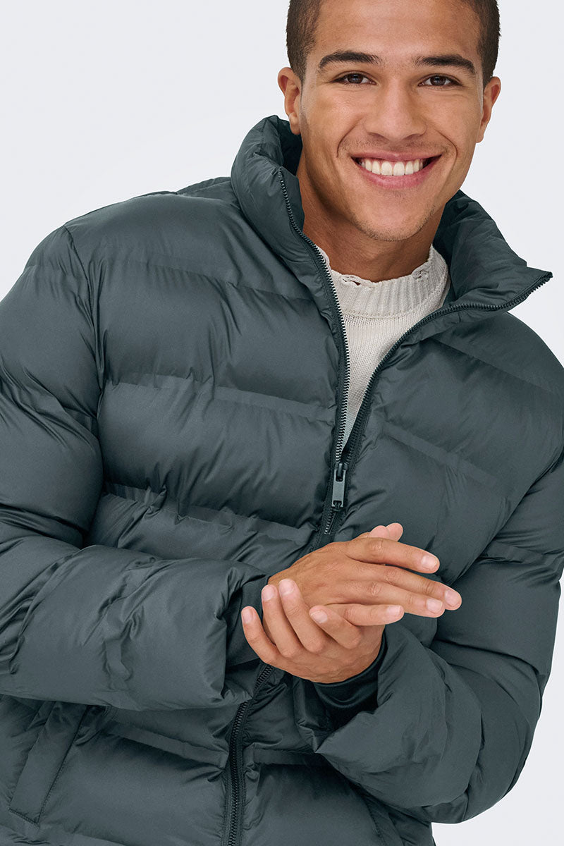- Krótka kurtka puchowa z wysokim kołnierzem