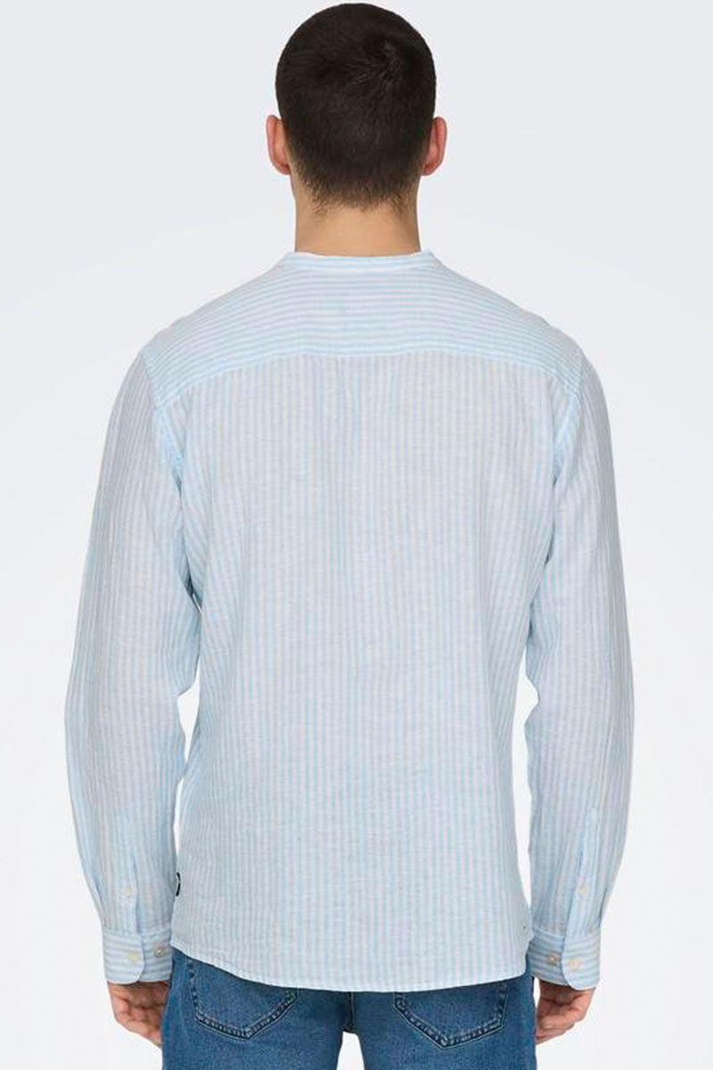 Caiden LS Mao Stripe Linen Shirt Cashmere Blue