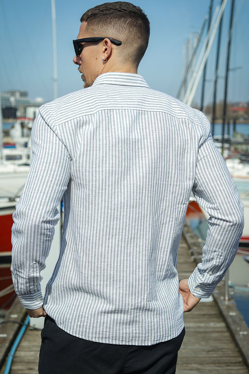 Caiden LS Stripe Linen Shirt Sea Spray