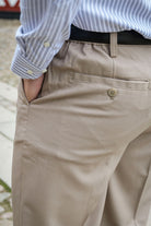 Luźne spodnie chino w odcieniu Chinchilla, wykonane z wysokiej jakości tkaniny łączącej wygodę i styl. Materiał zawiera 78% poliestru z recyklingu, 20% wiskozy oraz 2% elastanu, co zapewnia trwałość oraz elastyczność, a jednocześnie dba o środowisko. Spodnie posiadają klasyczne detale, takie jak szlufki na pasek oraz praktyczne kieszenie z tyłu i po bokach, idealne na codzienne użytkowanie.