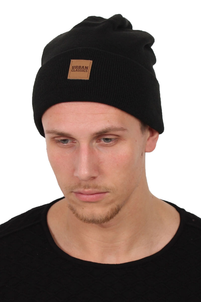Leatherpatch Long Beanie Black