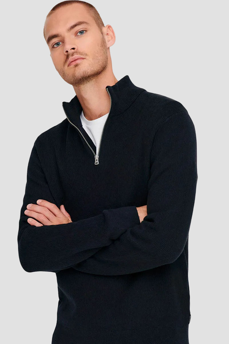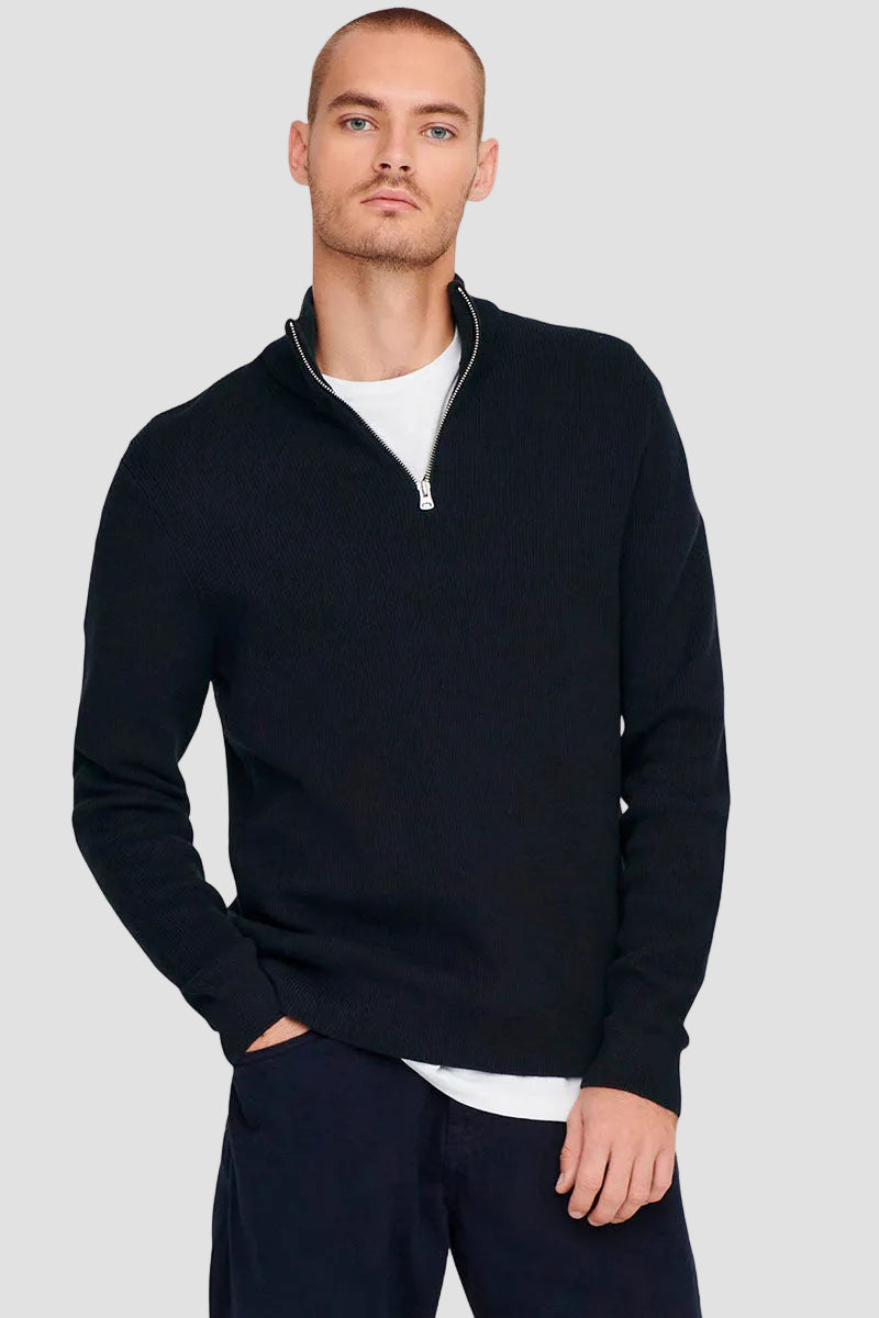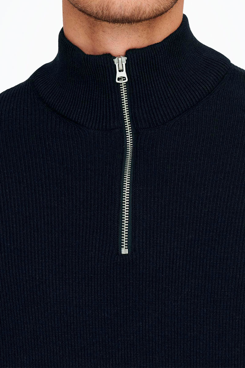 PHIL COTTON HALF ZIP KNIT Dark Navy