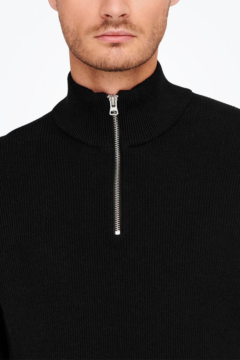 PHIL COTTON HALF ZIP KNIT Black
