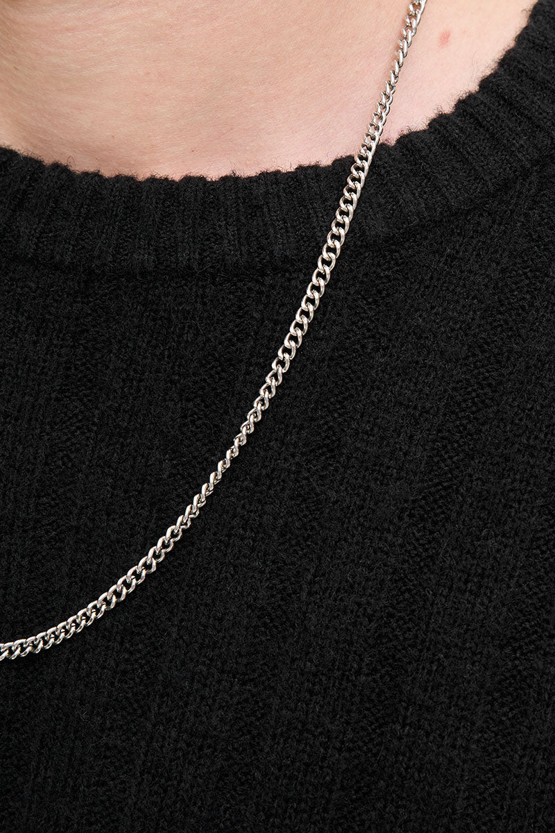 - Płasko dziany sweter z okrągłym dekoltem i długimi rękawami