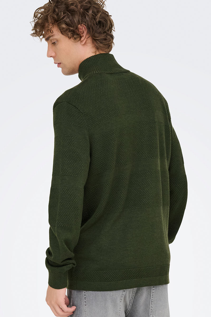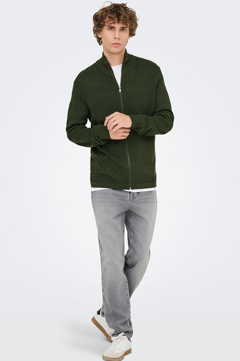 Malik Regular Zip Cardigan Knit Olive Night