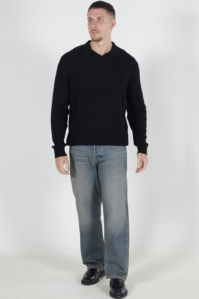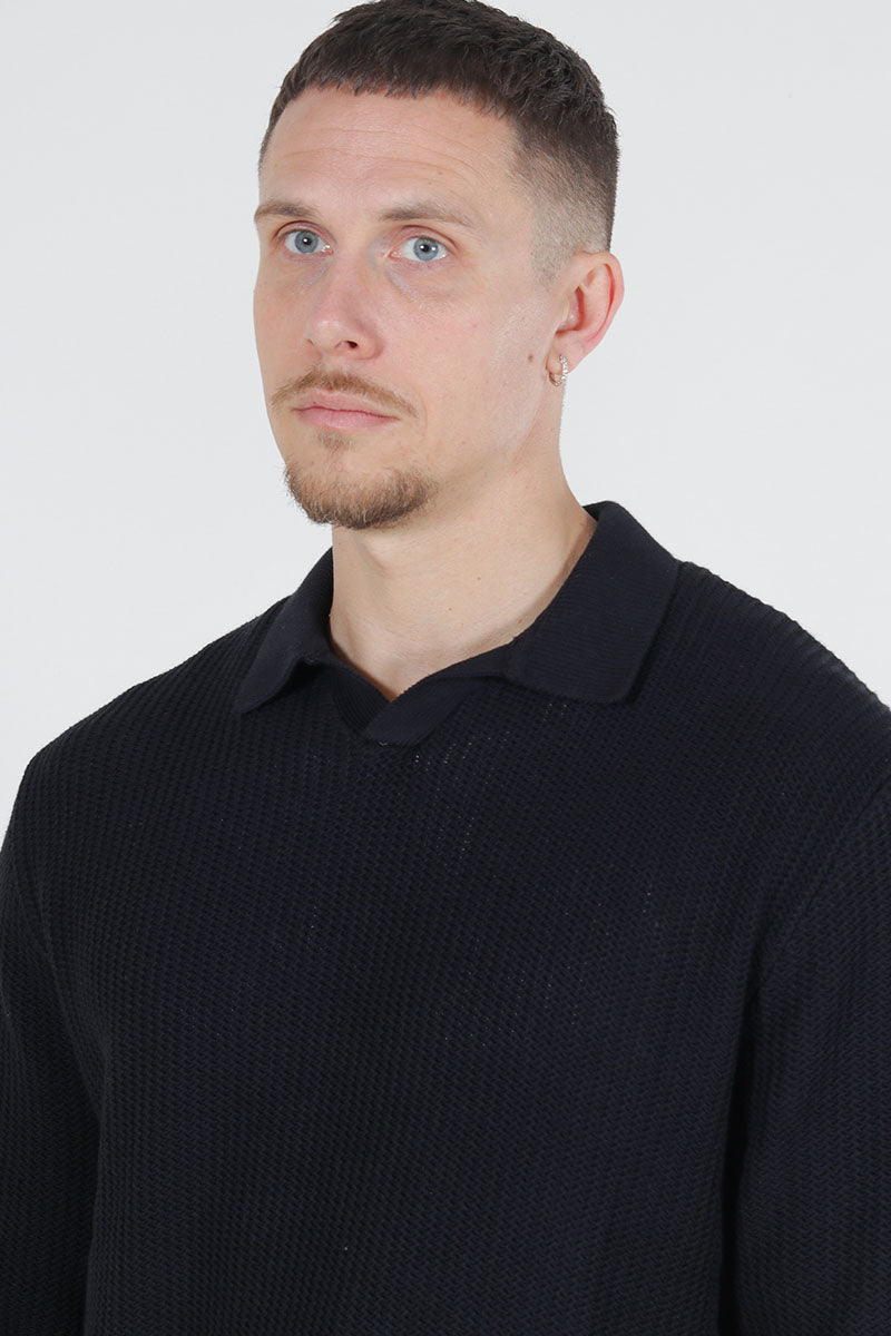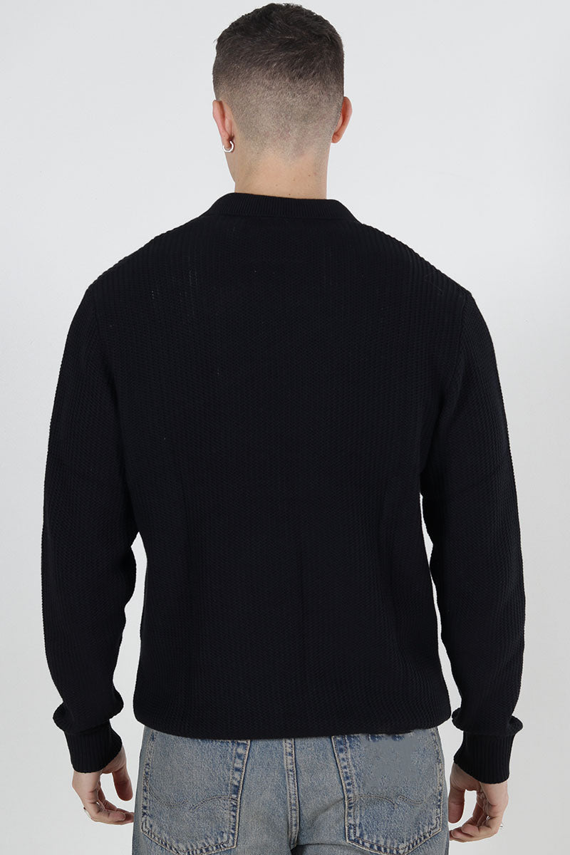 - Posiada kołnierz polo oraz prążkowane mankiety i dół