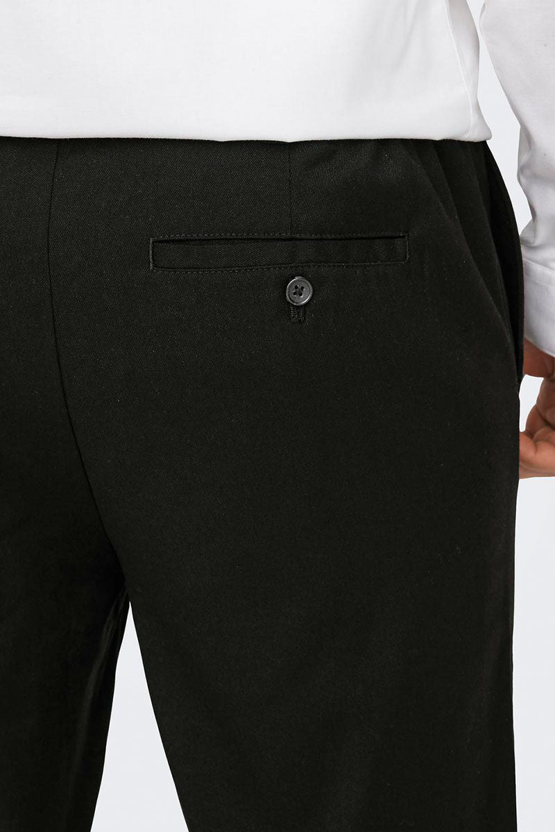 - Zarówno z zapięciem na guzik, jak i regulacją sznurkiem w pasie.