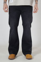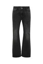 Te bootcut jeansy w spranych odcieniach czerni to wszechstronny wybór do codziennej garderoby. Denimowa tkanina ma idealnie zrównoważoną gramaturę, która łączy komfort i styl, dzięki czemu spodnie nadają się na wiele okazji. Średni stan zapewnia wygodne dopasowanie, a lekko rozszerzane nogawki nadają klasyczny wygląd z nowoczesnym akcentem. Dodatkowe detale, takie jak naszywka, szlufki i nity, dodają projektowi charakteru.