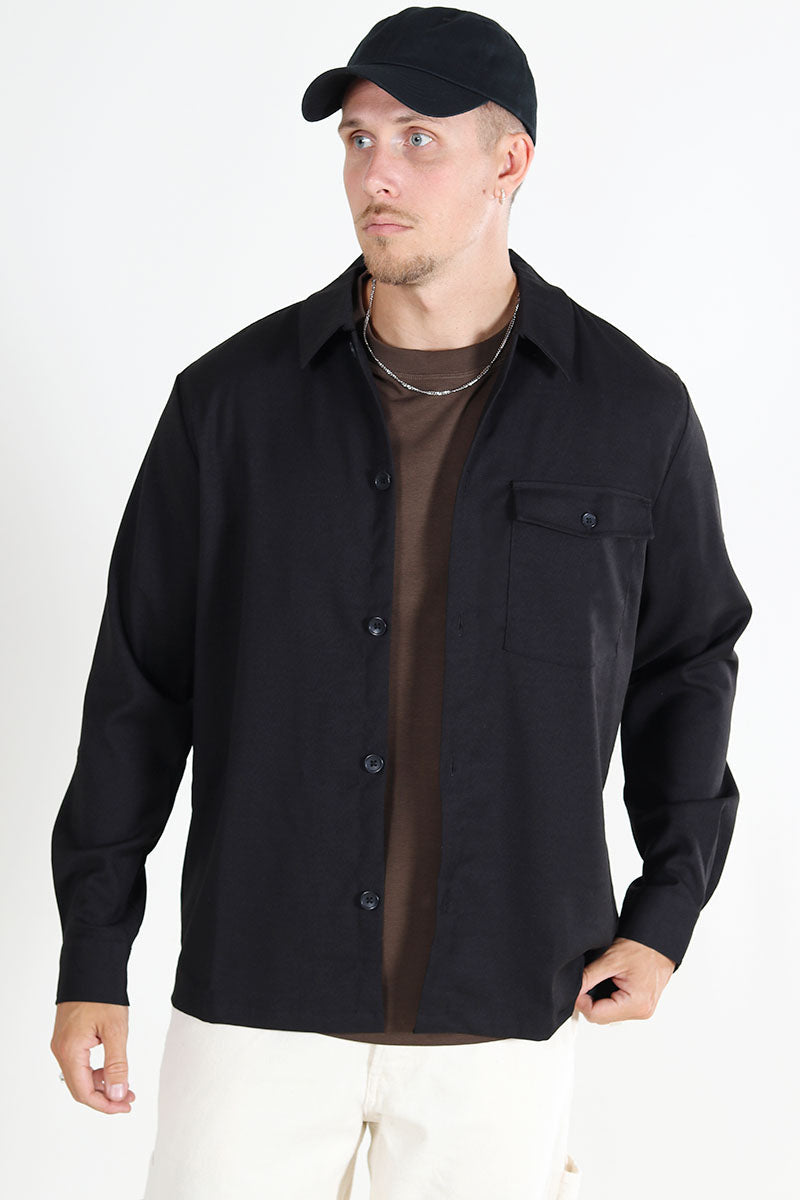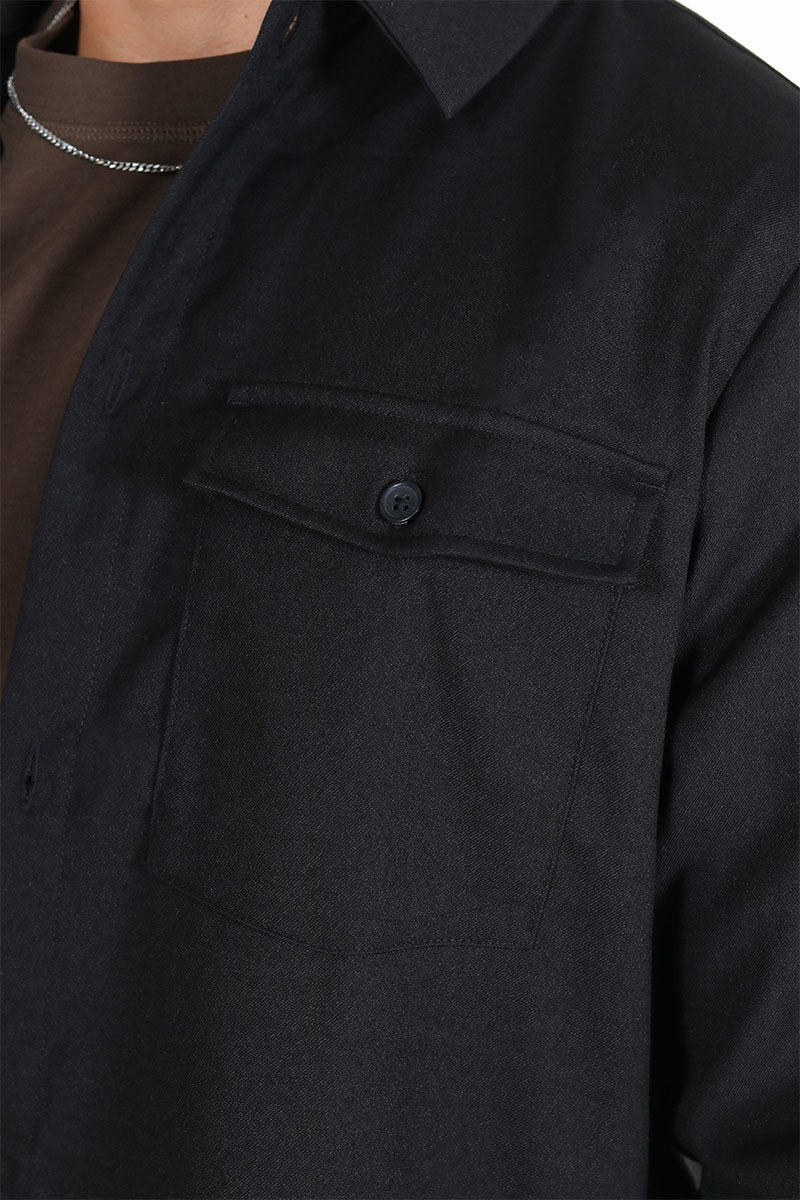 - Jednokolorowa koszula wierzchnia z długim rękawem.