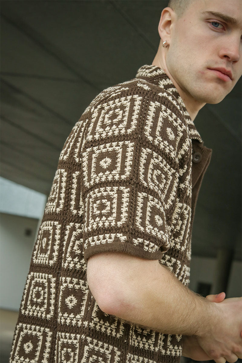 - Dzianinowa koszulka polo z krótkim rękawem i wzorem