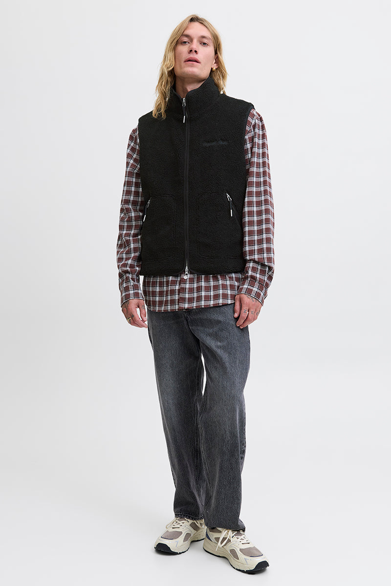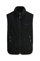 - Kamizelka ma wysoki kołnierz oraz zamki błyskawiczne z przodu i przy kieszeniach