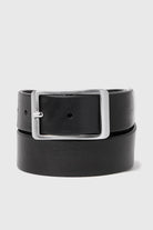 Belt from Saddler in wildly delicious quality. Belt end is square in it. Coming in a completely black in color, with a chrome-colored belt buckle. SKU: 122013426161