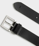 Awesome belt from Saddler. The quality is super high since the leather is really good. The end of the belt is in a square. Comes with a belt buckle in chrome.