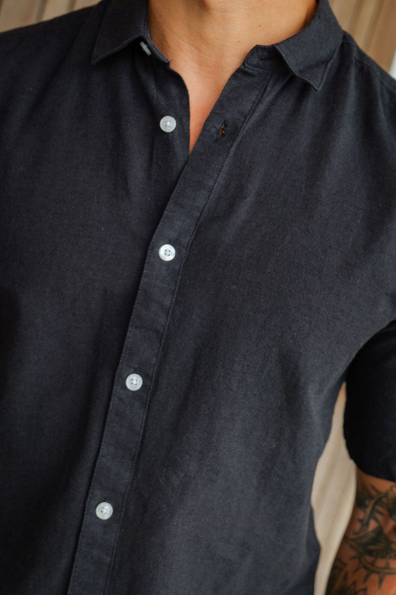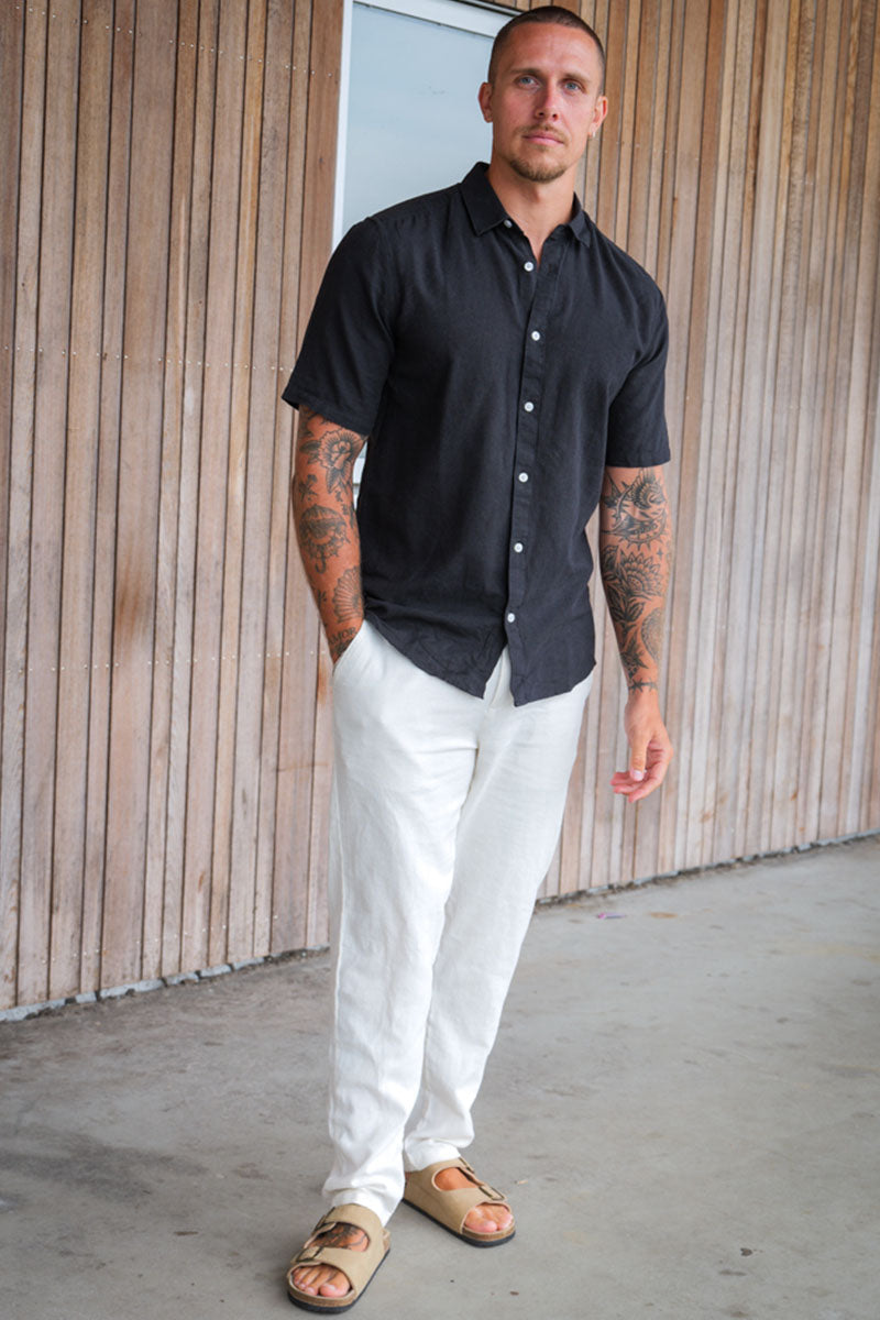 Caiden SS Linen Shirt Black