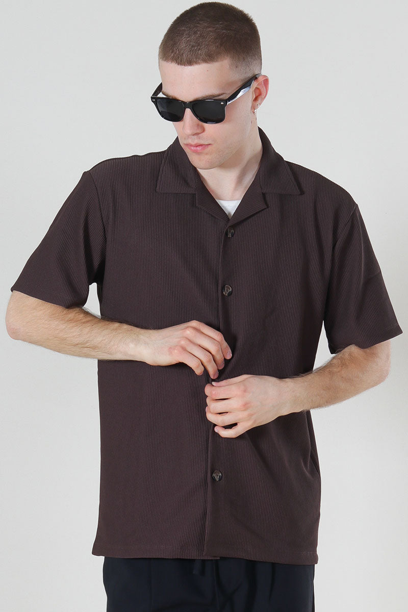 Relax Plisse Resort SS Shirt Chocolate Brown