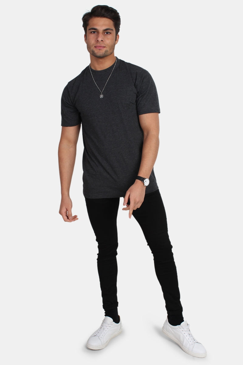Basic t-shirt in the colour of anthracite. The tee has a round neckline with ribbing. It is possible to fold-up sleeves. The tee has a very simple and plain design. Quality: 100% cotton. This t-shirt is large in sizes. THE MODEL IS APPROX. 1,76 CM AND 75 KG. HE WEARS THIS PRODUCT IN A SIZE. M b>
