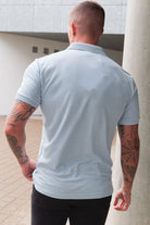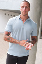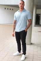 - Jasnoniebieska koszulka polo z krótkim rękawem