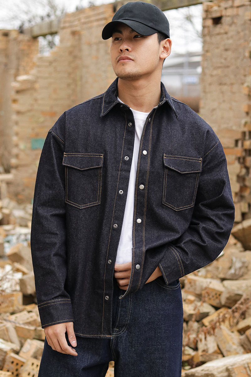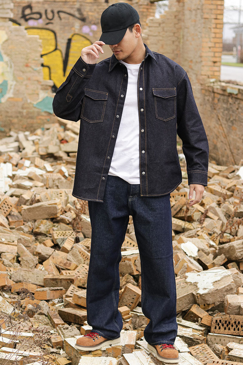 Austin Wide Fit Denim Shirt LS Dark Denim