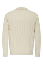 - Beżowy sweter polo z długim rękawem w kroju regular fit