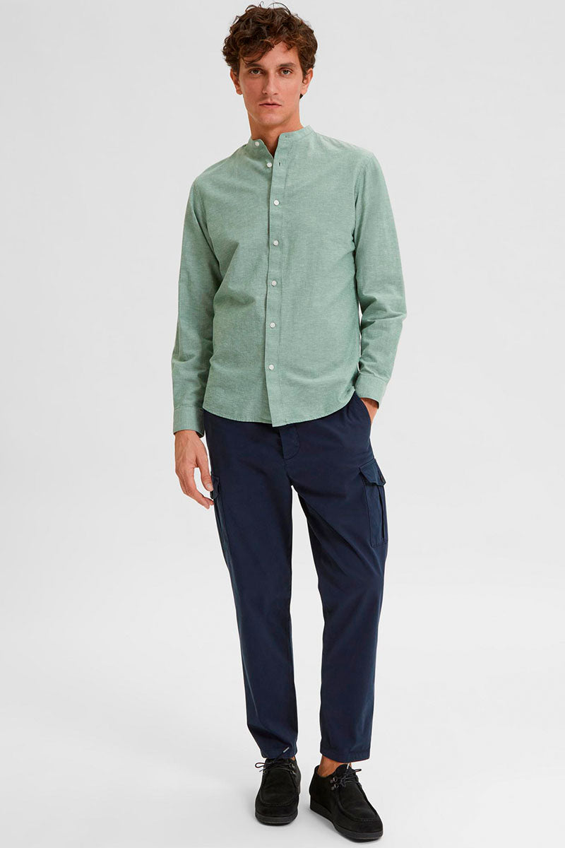 SLHSLIMNEW-LINEN SHIRT LS BAND W Desert Sage