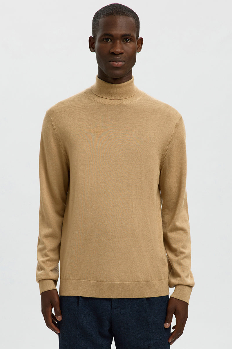 • Miękki sweter dzianinowy z golfem i długimi rękawami