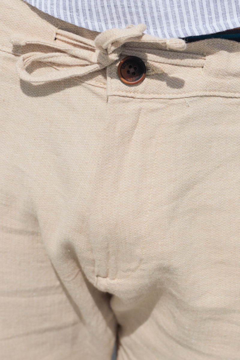 Spodnie chino wykonane z mieszanki organicznej bawełny i lnu, które zapewniają komfort i lekkość noszenia. Model o dopasowanym, zwężanym kroju i średnim stanie, wyposażony w zapięcie na guziki oraz suwak. Idealne do codziennych, swobodnych stylizacji, podkreślają nowoczesny, casualowy charakter ubioru.