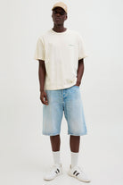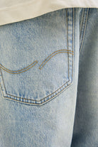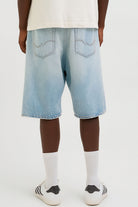 - Jasnoniebieskie dżinsowe spodenki w bardzo luźnym kroju.
