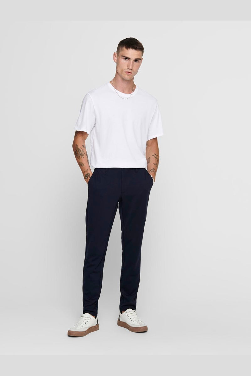 Bill Bamford Pleated Relaxed Fit Chino Dark Navy Stripe