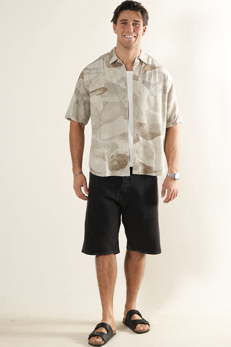 Bud Relaxed Fit AOP Linen Shirt Chinchilla