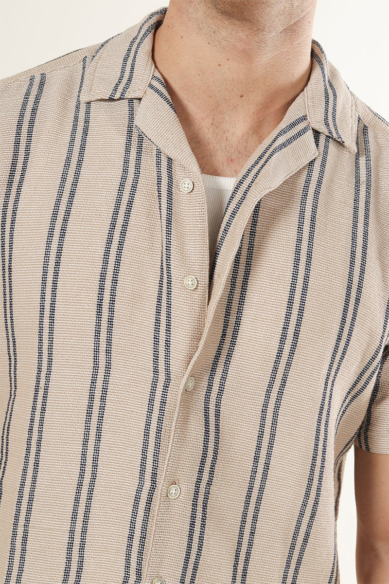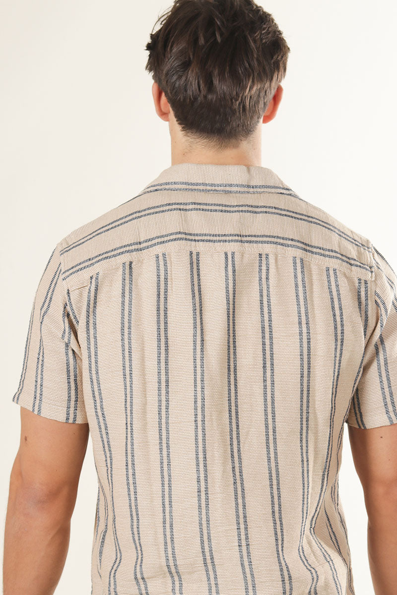Trev Reg Structure Stripe SS Shirt Vintage Khaki