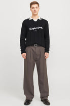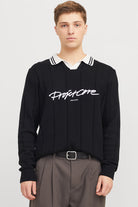 - Czarny, długi rękaw polo sweter w relaxed fit.