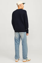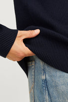 - Ciemnoniebieski sweter z długim rękawem w strukturze fit
