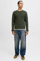 • Ciemnozielony sweter z długim rękawem w kroju regular fit