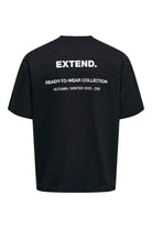 • T-shirt ma nadruk z tyłu oraz małą naszywaną metkę z boku