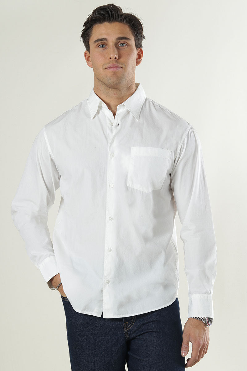 - Posiada klasyczne zapięcie na guziki, kołnierzyk i kieszeń na piersi