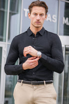 - Klasyczny fason: Koszula ma klasyczny kołnierzyk i zapięcie na guziki, co nadaje jej stylowy i profesjonalny wygląd. Czarny kolor sprawia, że koszula nadaje się na formalne okazje i może być łączona z wieloma różnymi strojami.