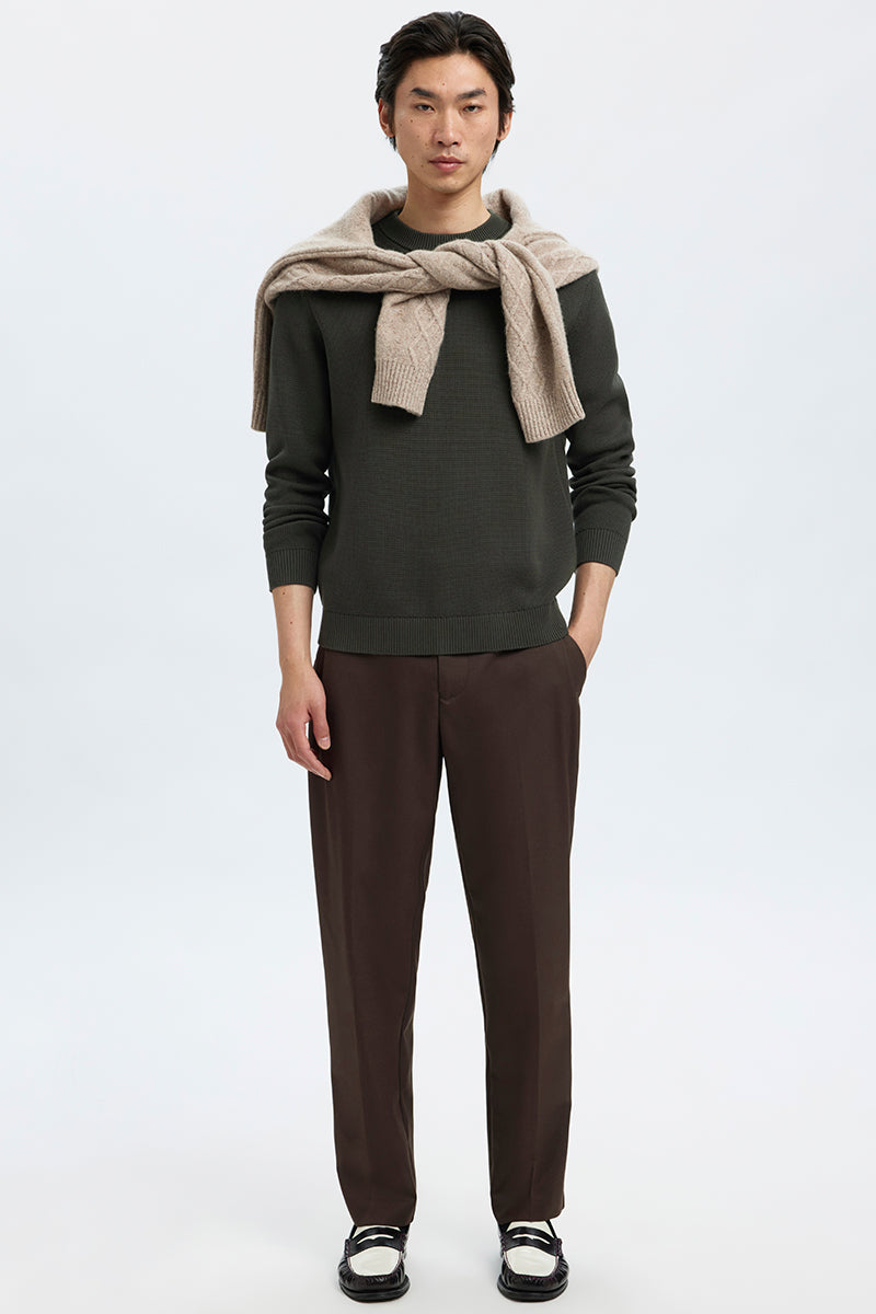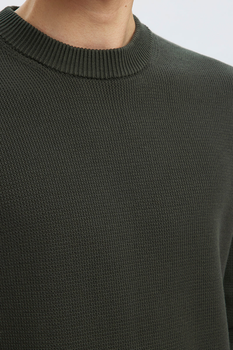 Dane LS Structure Knit Crew Neck Deep Forest
