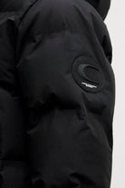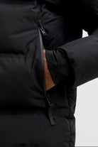 Kurtka puchowa w czarnym kolorze, zaprojektowana tak, aby zapewnić ciepło i komfort podczas chłodnych dni. Wykonana z tkaniny o wytrzymałej, nieelastycznej strukturze, która podkreśla jej solidność i trwałość. Dolna krawędź i rękawy wykończone ściągaczami, co dodatkowo chroni przed chłodem. Kaptur z regulacją na sznurek pozwala na dopasowanie do indywidualnych potrzeb, a zamek błyskawiczny zapewnia wygodne zapinanie. Kurtka jest ocieplona lekkim wypełnieniem z włókien syntetycznych, które gwarantuje odpowiednią izolację termiczną. Idealna na outdoorowe wypady i codzienne użytkowanie w sezonie zimowym.