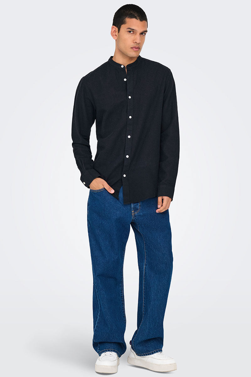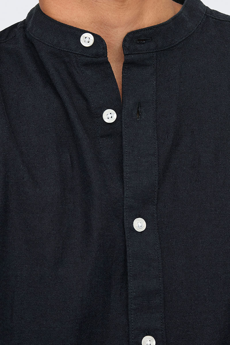 CAIDEN LS SOLID LINEN MAO SHIRT Black