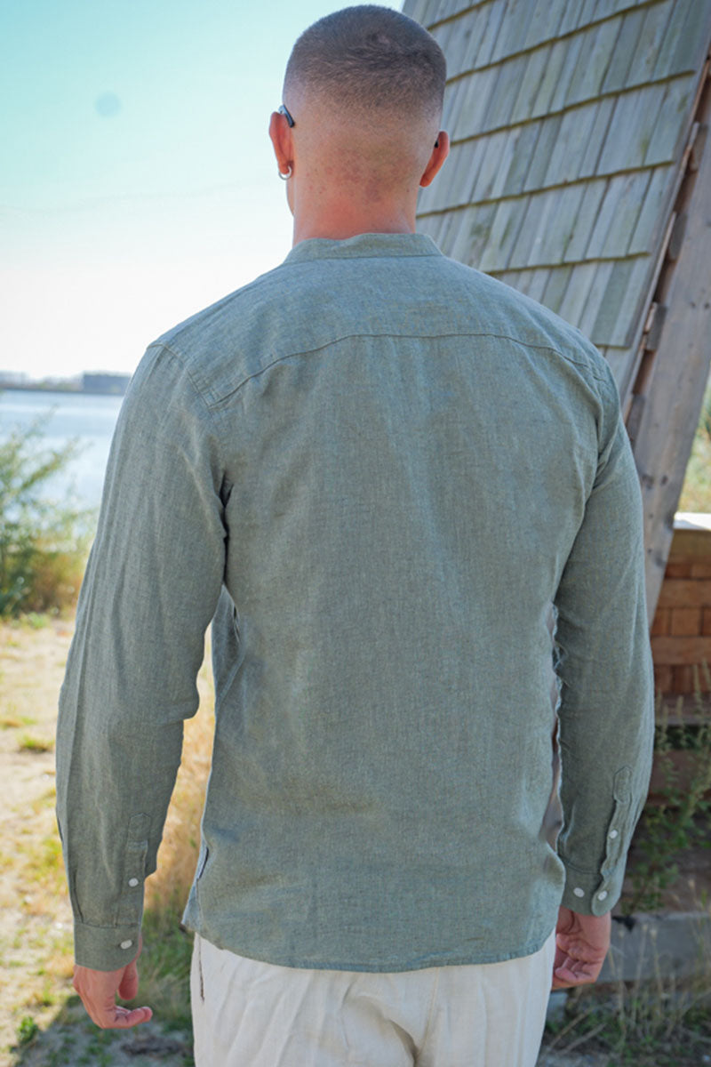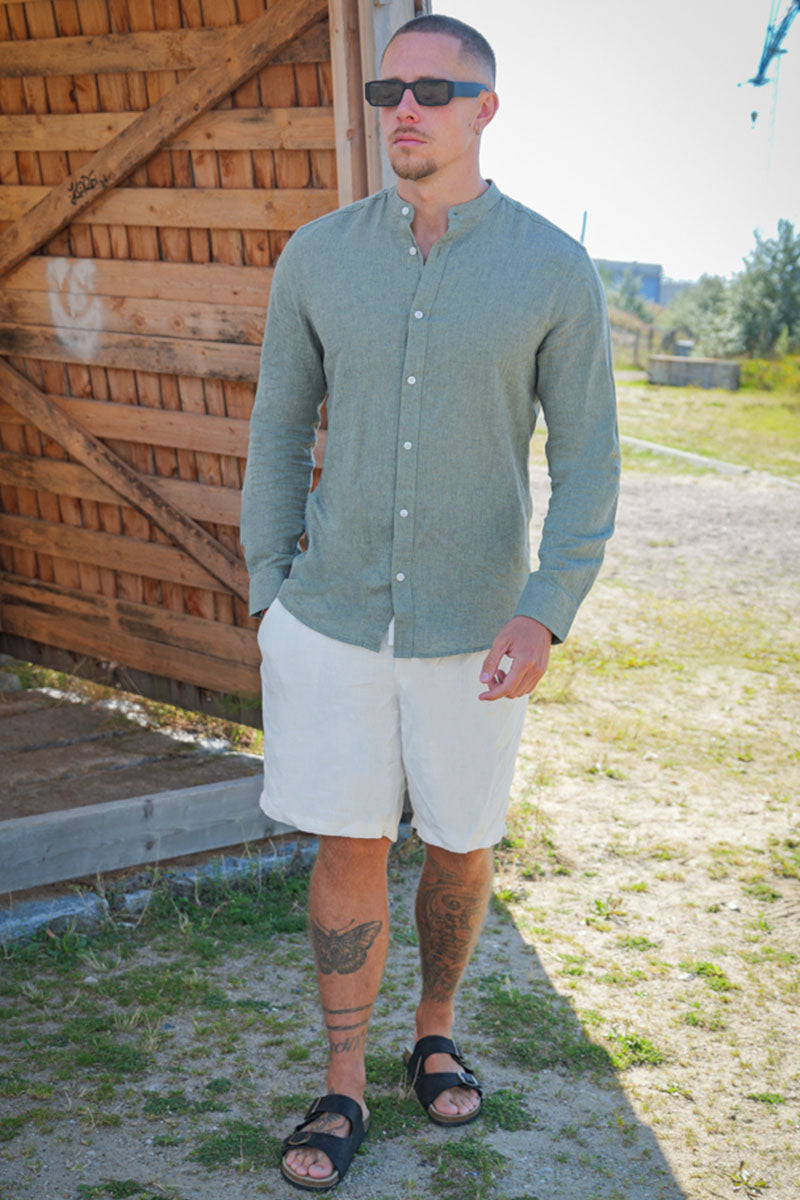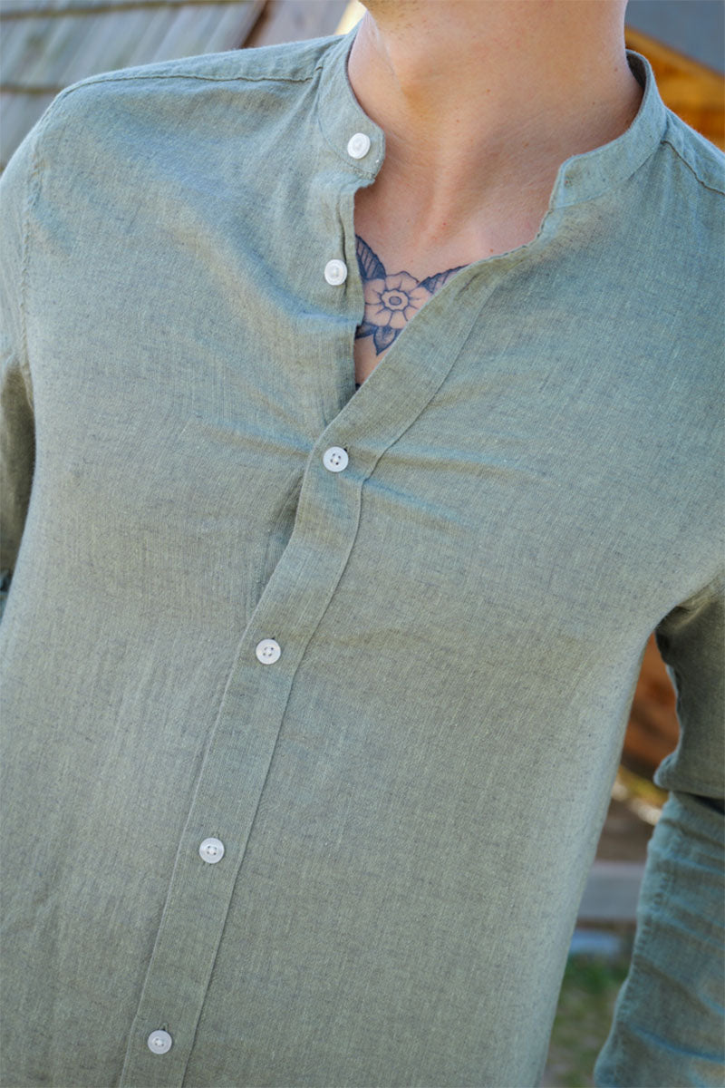 CAIDEN LS SOLID LINEN MAO SHIRT Swamp