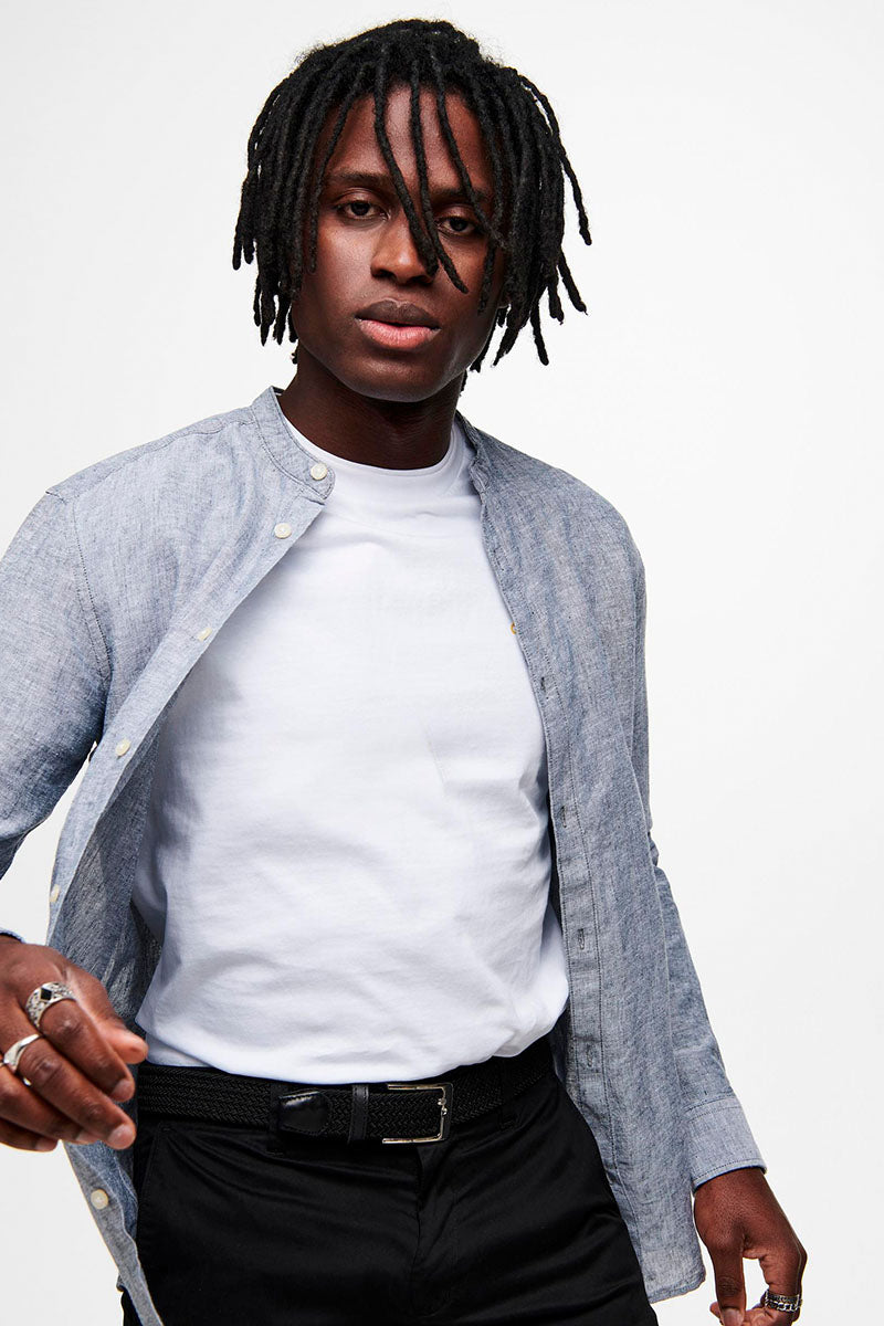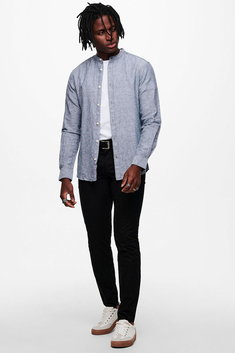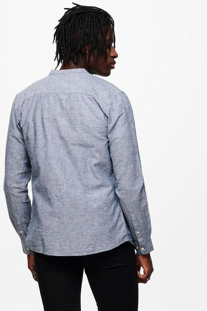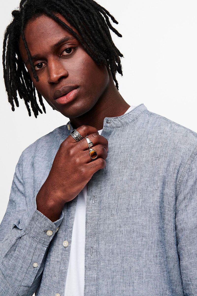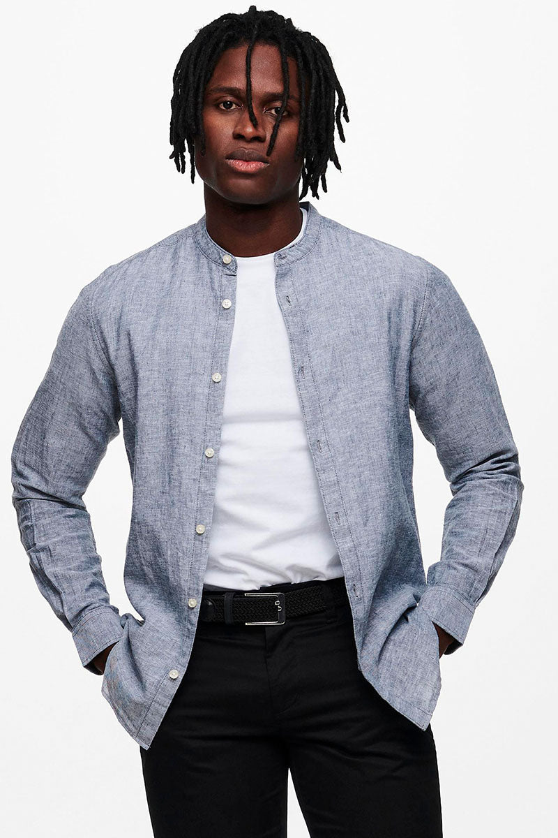 CAIDEN LS SOLID LINEN MAO SHIRT Dress Blues