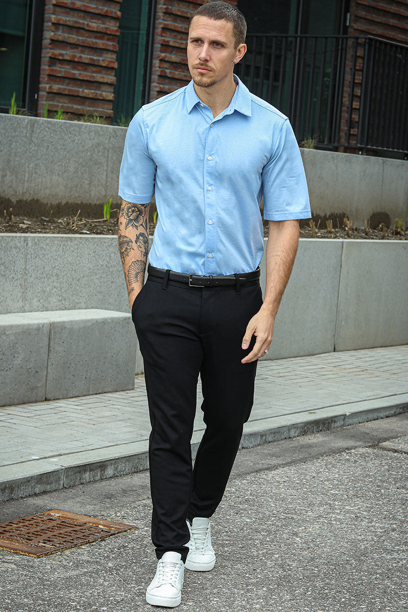 Comfort Shirt z krótkim rękawem w kolorze Cashmere Blue to idealna koszula do letniej garderoby. Kolor jest świeży i jasny, co nadaje jej zwiewny wyraz, który idealnie pasuje na gorące letnie dni. -