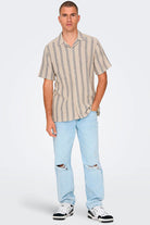 Trev Reg Structure Stripe SS Shirt Vintage Khaki