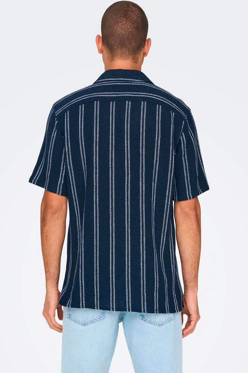 Trev Reg Structure Stripe SS Shirt Dark Navy