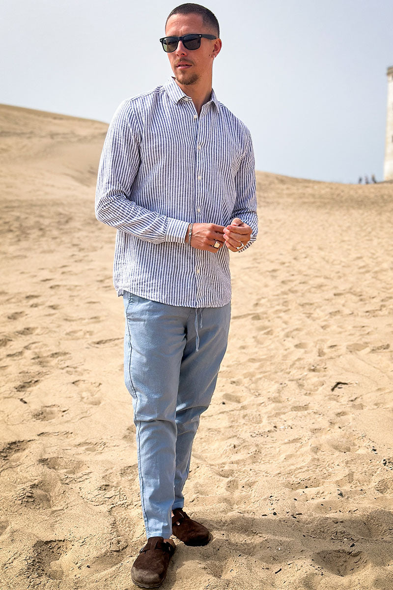 Caiden LS Stripe Linen Shirt Dark Navy