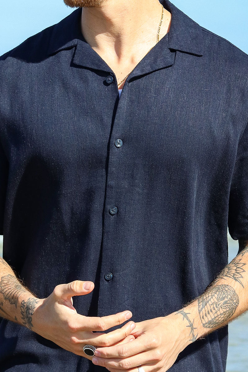 Kari Relaxed Cuba Shirt Viscose Linen Dark Navy